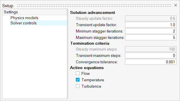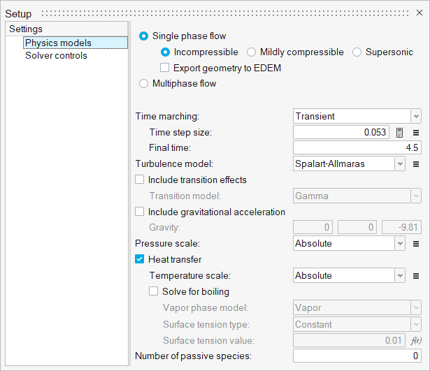 At 0.2s into the simulation, a cold slug of water is injected at both the inlets and the temperature is ramped down to 283.15 K starting from 0.2 s to 0.4 s. Then it is maintained constant at 283.15 K for 1 sec and then ramped up to initial states from 1.4s to 1.6s. Given a flow path of 0.6356 m, the transit time for the slug is approximately 1.6s. Therefore, our simulation time should be at least 3.2 s to factor in the duration of the slug and transit time. The total simulation time will be 4.5s to allow time for the thermal conditions to return to a steady state.