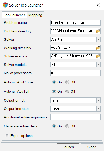 Prior to running through this tutorial, copy HyperMesh_tutorial_inputs.zip from <Altair_installation_directory>\hwcfdsolvers\acusolve\win64\model_files\tutorials\AcuSolve to a local directory. Extract ACU-T3200_HeadlampEnclosure.hm from HyperMesh_tutorial_inputs.zip.