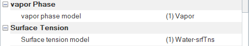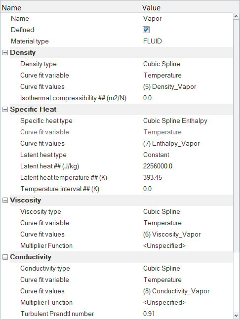 Water vapor which also has temperature dependent material properties is specified as the vapor phase model.