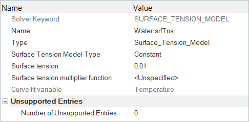 The fluid in this problem is water, which has temperature dependent material properties: density, viscosity, enthalpy and conductivity. There are also surface tension and vapor phase models specified for this material.