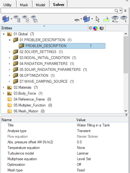 - In the Solver Browser, expand 17.Output and click NODAL_OUTPUT.