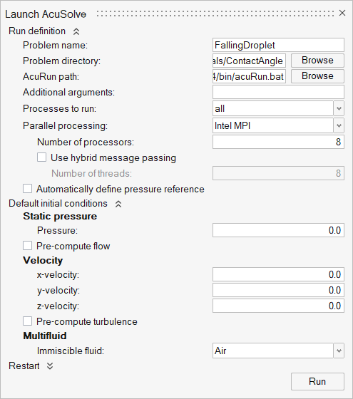 This tutorial introduces you to the workflow for setting up a transient droplet simulation using HyperWorks CFD. Prior to starting this tutorial, you should have already run through the introductory HyperWorks tutorial, ACU-T: 1000 HyperWorks UI Introduction, and have a basic understanding of HyperWorks CFD and AcuSolve. To run this simulation, you will need access to a licensed version of HyperWorks CFD and AcuSolve.