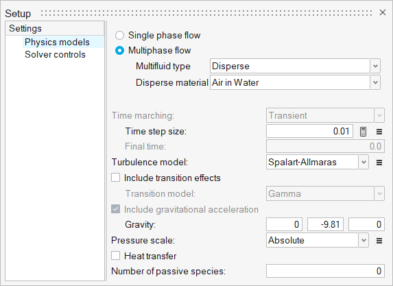In this problem, Water is considered a Carrier field material and Air is considered as Dispersed field material. Fluid enters the Inlet at an Average Velocity of 1 m/sec and the Water and Air volume fractions at the inlet are 96% and 4% respectively.