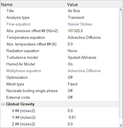 In this step, you will define the material properties for the problem and assign body force to the fluid volume.