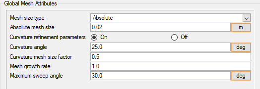 In the next steps you will set the global mesh attributes. In subsequent steps you will set the surface meshing attributes.