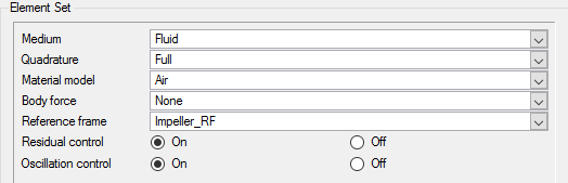 A reference frame is used to specify a rotating frame of reference. When specified for a volume set in domain, the elements in that volume set are assumed to be solved in the given rotating reference frame and rotational body forces are added for that volume set. In this tutorial, the fluid region near the impeller blades is assigned a rotating reference frame.