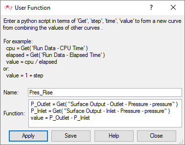 As the solution progresses, the AcuTail and AcuProbe windows are launched automatically. In this step, you will create a User Defined Function (UDF) and generate a plot of the pressure rise between the inlet and outlet.