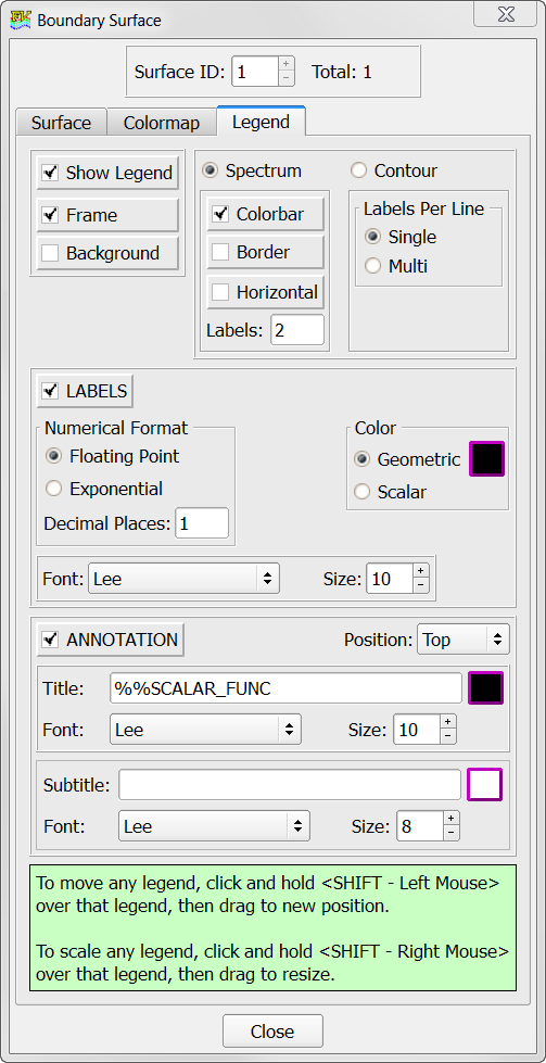 Surface groups are containers used for storing information about a surface. This information includes the list of geometric surfaces associated with the container, as well as attributes such as boundary conditions, surface outputs, and mesh sizing information.