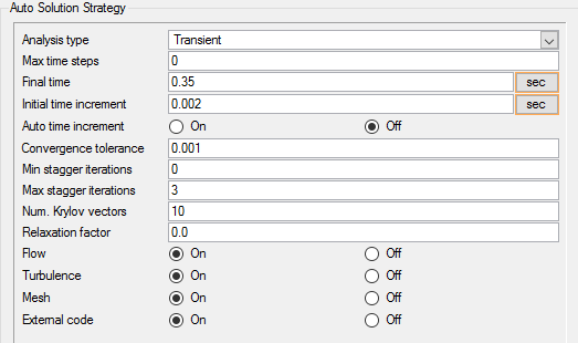 Note that the initial conditions of the flow are actually laminar, however, the increase in flow velocity and flow around the valve shutter is expected to cause a rapid transition to turbulent conditions. Therefore, the simulation will be set up to model transient, turbulent flow. When performing a transient analysis, convergence is achieved at every time step based on the defined stagger criteria. Mesh motion will be modeled using arbitrary mesh movement (arbitrary Lagrangian-Eulerian mesh motion).