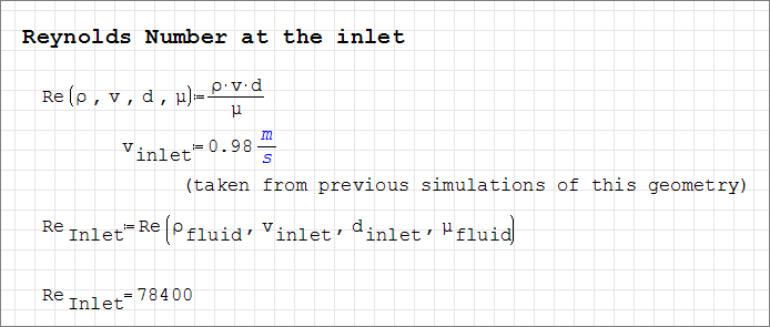 The fluid in this problem is water, which has a density (ρ) of 1000 kg/m3 and a molecular viscosity (μ) of 1 X 10-3 kg/m-sec, as shown in the worksheet.