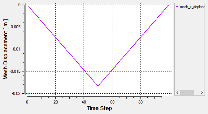 After the simulation is complete, the plot for mesh_x_displacement can be viewed using AcuProbe.