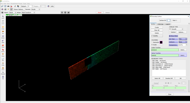 This tutorial shows you how to work with transient data. It also shows how to visualize the flow parameters on the complete geometry when only a section of it is simulated in AcuSolve by using multiple datasets.