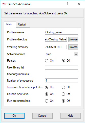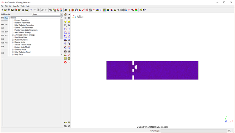 Prior to running through this tutorial, copy AcuConsole_tutorial_inputs.zip from <Altair_installation_directory>\hwcfdsolvers\acusolve\win64\model_files\tutorials\AcuSolve to a local directory. Extract Closing_Valve.acs from AcuConsole_tutorial_inputs.zip.