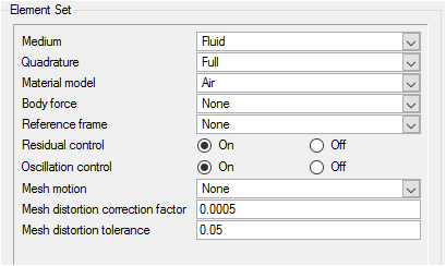 In the next steps you will assign the values of mesh distortion parameters to the fluid volume.