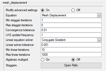 - Creating advanced solution strategy parameters for mesh displacement stagger