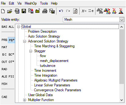 - Click PB* in the Data Tree Manager to display all the available settings related to general problem setup in the Data Tree.