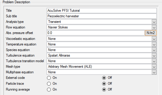 This tutorial provides the instructions for setting up, solving, and viewing results for a simulation of a piezoelectric fluid harvester. In this simulation, a piezoelectric flow harvester is placed in a fluid flow channel. The harvester is attached to a cylinder mount which also acts as a bluff body causing vortices in the fluid flow. The interaction between the pressure fields generated by the vortices and the flow harvester structure is simulated in this tutorial. AcuSolve is used in conjunction with a structural solver to compute the structural displacement of the harvester using a practical fluid structure interaction (P-FSI) approach. Arbitrary Lagrangian Eulerian (ALE) approach is used to compute the mesh deformation in the fluid domain as it interacts with the deforming structure.