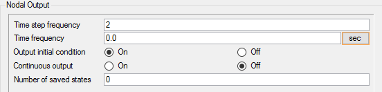 The nodal output command specifies the nodal output parameters, for example, output frequency and number of saved states.