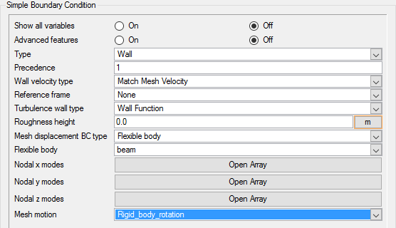 In this tutorial you worked through a basic workflow to set up a flexible body motion of a rotating beam in the wake of a cylinder. You started with the piezo_harvester_P-FSI.acs file from the tutorial Piezoelectric Flow Harvester and modified the set up to accommodate the rigid body rotation of the beam and the cylinder. Once the case was set up, you generated a solution using AcuSolve. Results were post-processed in AcuFieldView to allow you to create animation of the beam displacements with time.