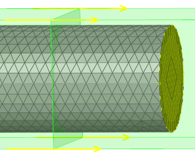 The geometry for this problem consists of a simple pipe channel with perfectly circular cross-section as the base shape. Water enters the Inlet at the rate of 0.0003 kg/s and the outlet is a standard pressure outlet at zero relative pressure. Walls of the channel are no-slip walls.
