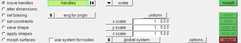 HyperMorph is used to parameterize the shape of the design. You will create morph shapes by moving the surface nodes. The volume nodes will be taken care of using the interpolated mesh motion feature of AcuSolve.