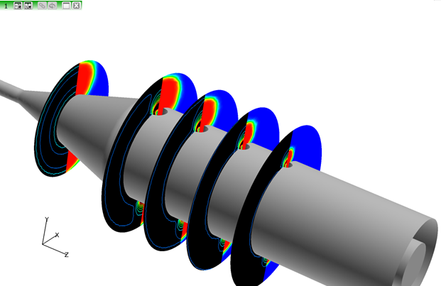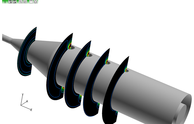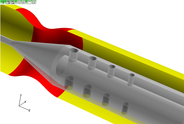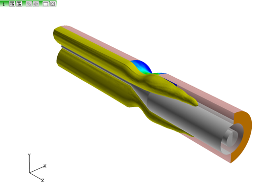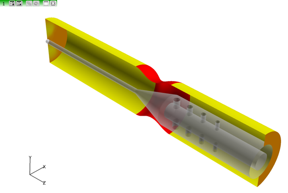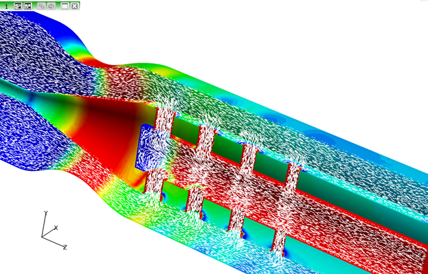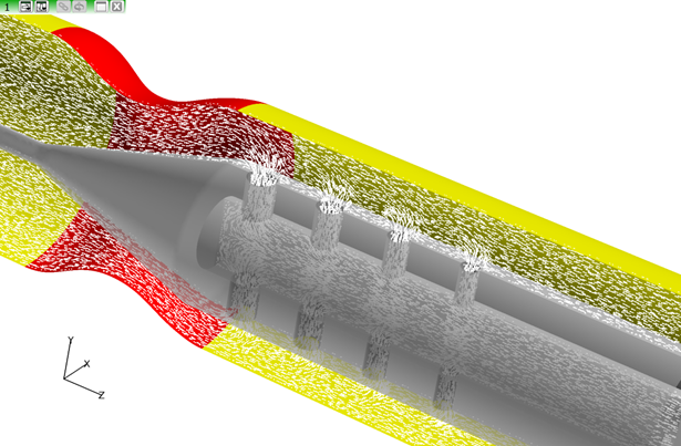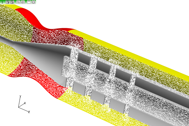 In this step you will create a vector coordinate surface to visualize the flow field created by the interaction of the fluid carrying the drug with the blood in the artery.