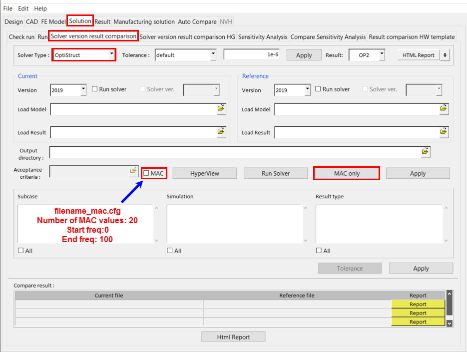 Along with the OptiStruct solver results comparison, the MAC data is key to identifying any problems in the model.