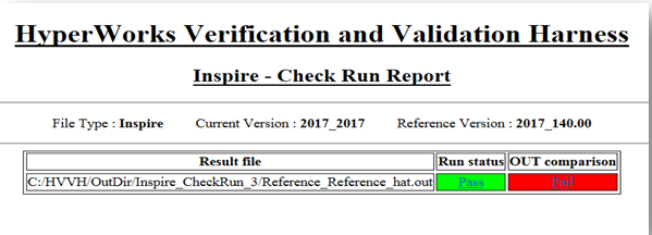 Compare an OptiStruct solver check run OUT file with a pre-certified or reference OUT file.