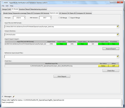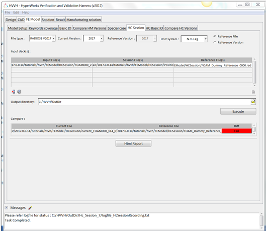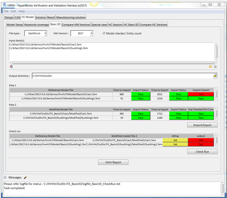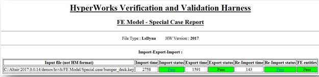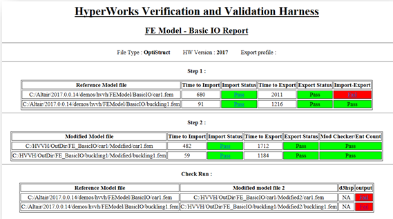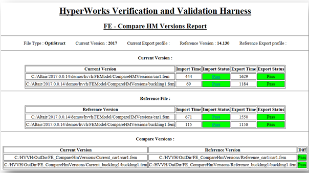 exported files in the current and reference versions of HyperMesh. If there are no differences, Pass is
