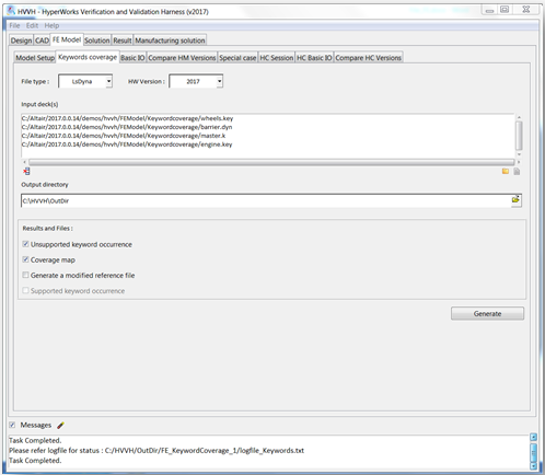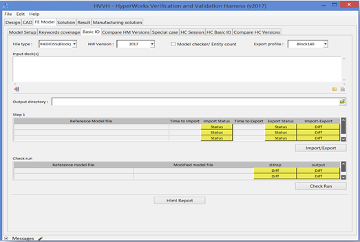 HyperWorks Verification and Validation Harness (HVVH) is a tool that can be used to verify and validate HyperWorks products. End users can use this tool to quickly evaluate the software quality, performance, reliability,