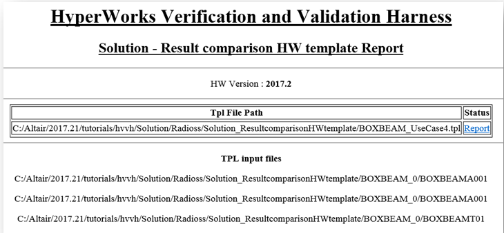 HyperWorks Verification and Validation Harness (HVVH) is a tool that can be used to verify and validate HyperWorks products. End users can use this tool to quickly evaluate the software quality, performance, reliability,