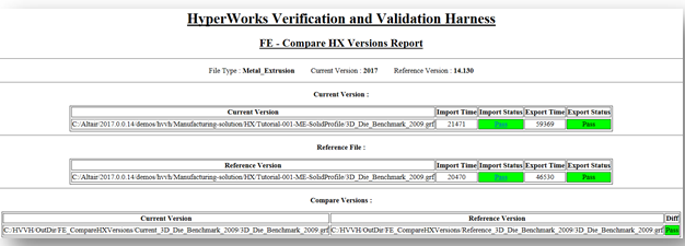 - Two OUT files generated from the same solver deck using two different solver versions can be compared.