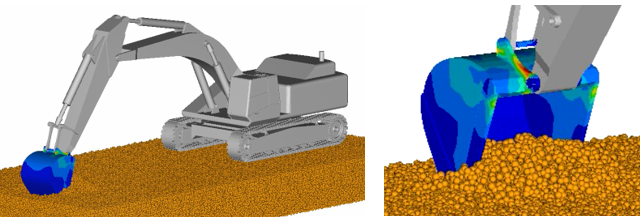 - MotionSolve can interface with Altair EDEM, a state-of-the-art bulk material simulation tool. EDEM is based on the Discrete Element Method (DEM) that simulates and analyzes the behavior of bulk materials, such as sand, granules, capsules, grass, rock masses, and so on. New to this cosimulation is the capability for component model synthesis (CMS)-based flexible bodies to interact with DEM particles. CMS flexible bodies can represent body deformation in the linear range. Reaction forces due to contact between DEM particles and the flexible body are simulated, which lead to strain and stresses within the flexible body. Absolute nodal coordinate formulation (ANCF)-based non-linear finite elements (NLFEs) are not supported to interact with DEM particles at this point. This feature will be part of a future release.
