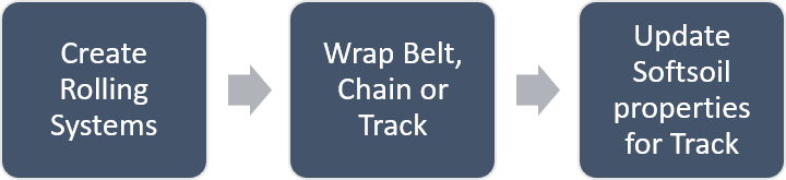 The belt, chain, or track can be wrapped around the rolling elements such that the elements are either located inside or outside. Based on the wrapping, some rolling elements might not even touch the belt, chain, or track initially, but might come in contact with it during the course of the simulation.
