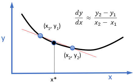 Figure 1. Finite differencing to evaluate the slope of a curve