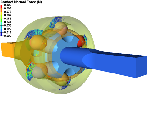 Figure 10. Normal Contact Force for a Constant Velocity Joint GeometryYou can plot these vectors for each triangular element on the rigid body or for a contact region.