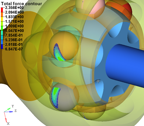 Figure 11. Total Contact Force Contour for a Constant Velocity Joint Geometry