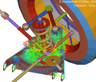 Note: The NLFE element results are always written in NODAL format whereas the CMS flexible results can be written in NODAL or MODAL format (this is controlled by the FORMAT_OPTION) attribute in the H3DOutput command statement. - Vector plots