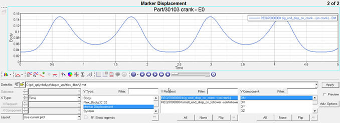 - Multibody Results File (MRF): The primary purpose of this binary file is to provide part displacement data to the post-processor module that creates the H3D file used for animation. The H3D file format is discussed later in this document. The MRF file can also be used to create plots. However, the performance may be slower than the ABF file.