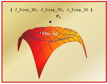 The surface is represented parametrically using a Reference_ParamCurve object. The surface points are defined with respect to the origin of Reference_Marker J. The point coordinates are measured in the coordinate system associated with Reference_Marker J. The surface is required to be fixed with respect to the body containing J and moves with it.