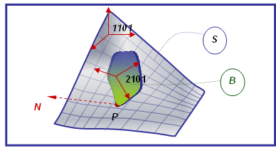 - Assume the contact point P on the Surface S has coordinates of [0.3, -3.0, 1.1] with respect to the Origin of 1101. The coordinates are measured in the coordinate system of 1101.