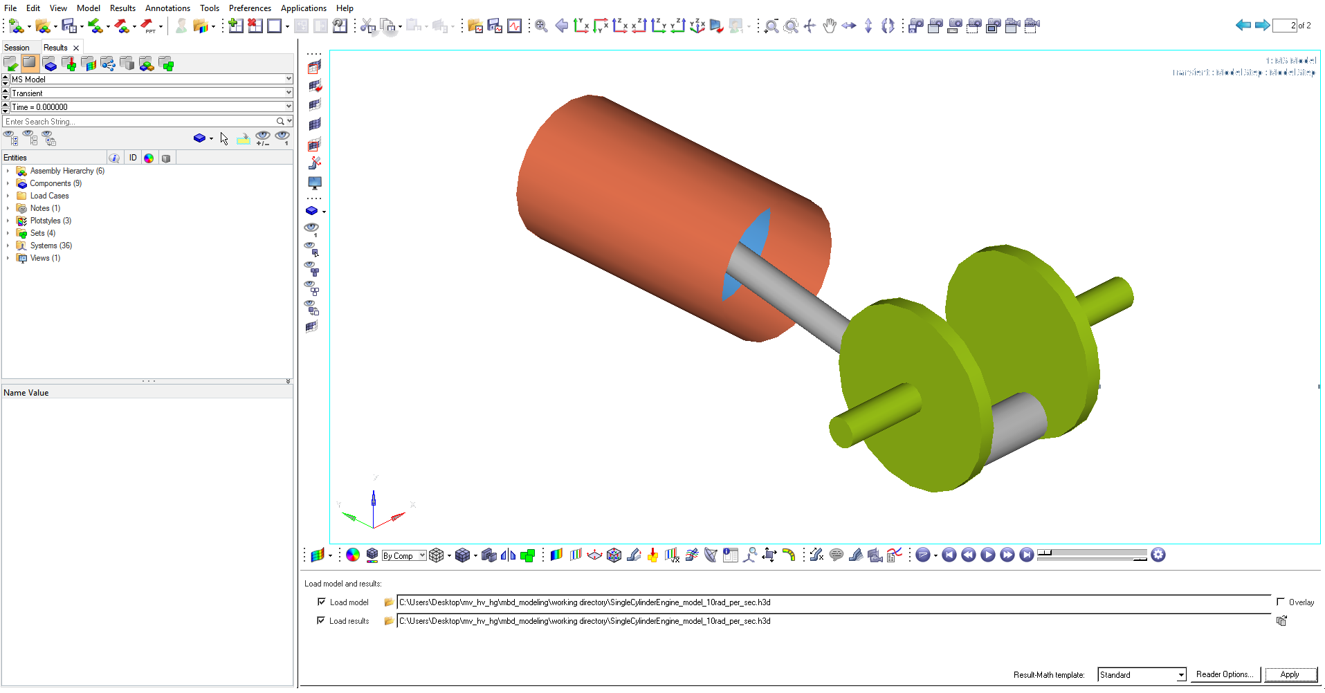 In this step you will invoke MotionSolve to solve your model.