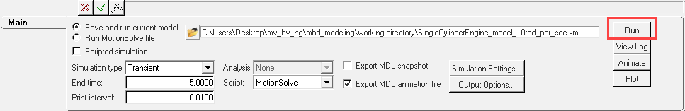 In this step you will learn to save your MotionView model to your <working directory>.