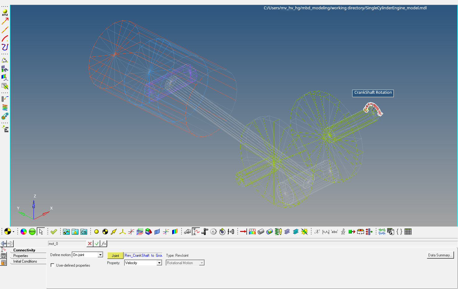 In this step you will modify the crank shaft rotational velocity to 10rad/sec.