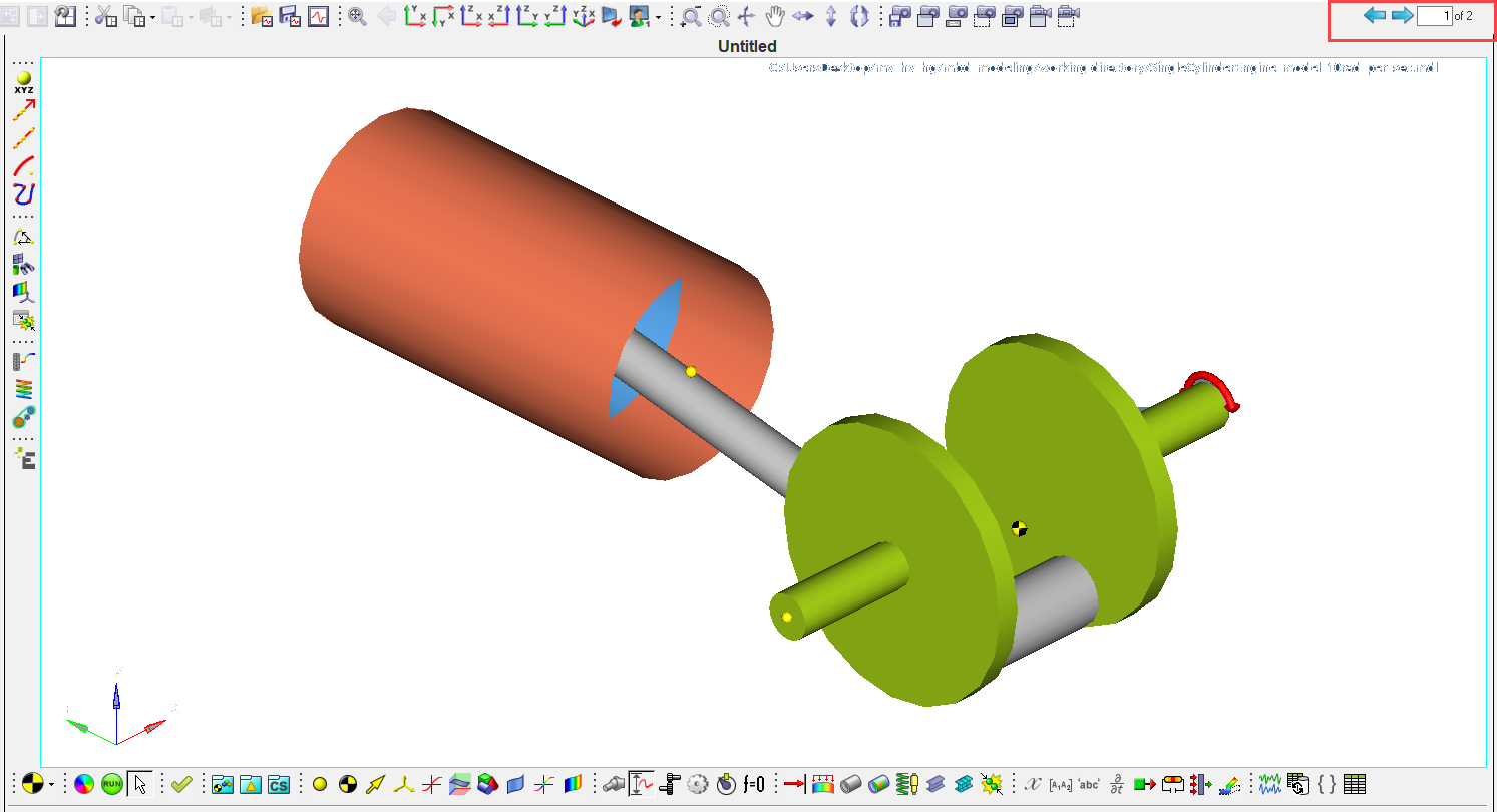 In this step you will learn how to add a page, change to different HyperWorks Desktop clients, change the page layout, and navigate between pages. You will also load the result files to view the animation and the plot.