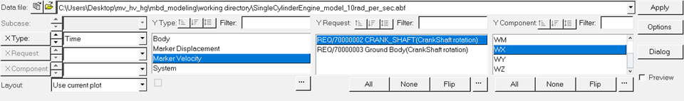 Table 1. Options for loading and saving different file types File Type Extension Window Mode Session script .mvw Any Report template .tpl Any MDL .mdl MotionView Animation .gra, .res (Adams and Optistruct), .h3d, .flx, .mrf HyperView Plot .req, .mrf, .abf, .plt, .res (Adams) HyperGraph Templex script, any text file .tpl, .txt TextView - H3D File Use Cases in MotionView/MotionSolve
