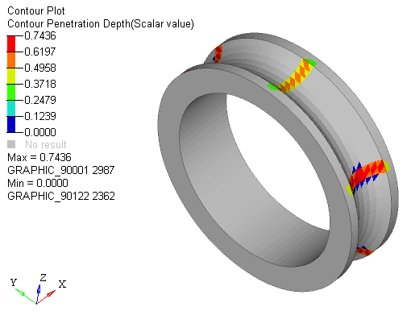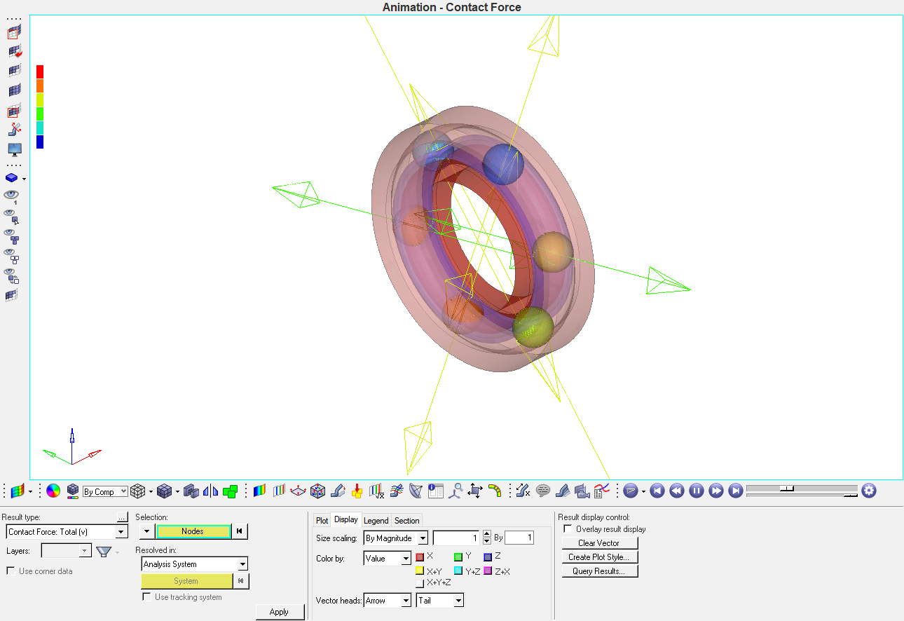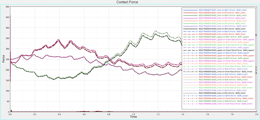 You were also able to setup a transient analysis to calculate the contact forces between these geometries and post-process the results via vector and contour plots, in addition to plotting the contact force requests.