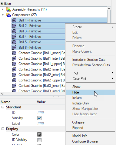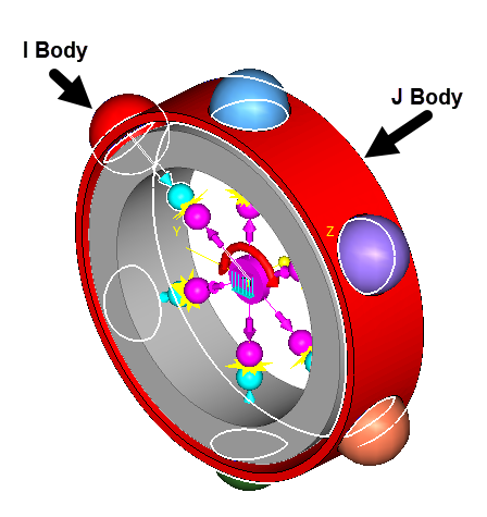 In this step, you will define contact between Ball 6 and the Outer Race, Ball 6 and the Rim, and Ball 6 and the Inner Race.