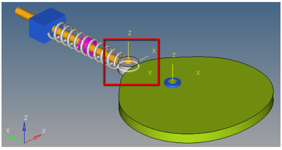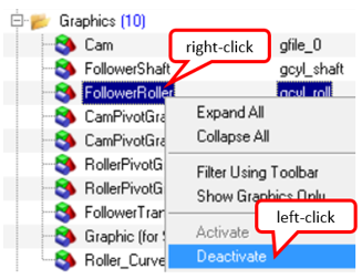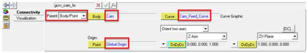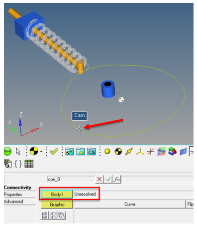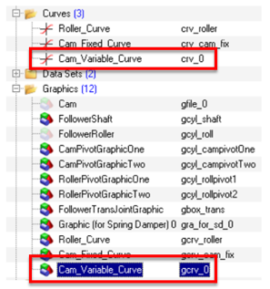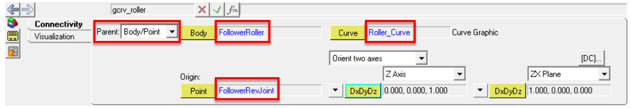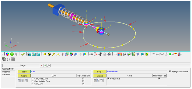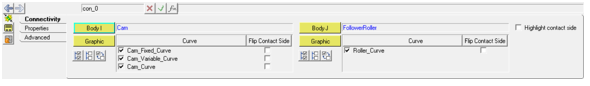Define a contact between Cam and FollowerRoller using their respective Curve Graphics.