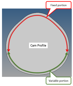 Divide the cam profile into Fixed and Variable portions to determine the best shape of the cam for achieving a specific displacement profile of the follower.